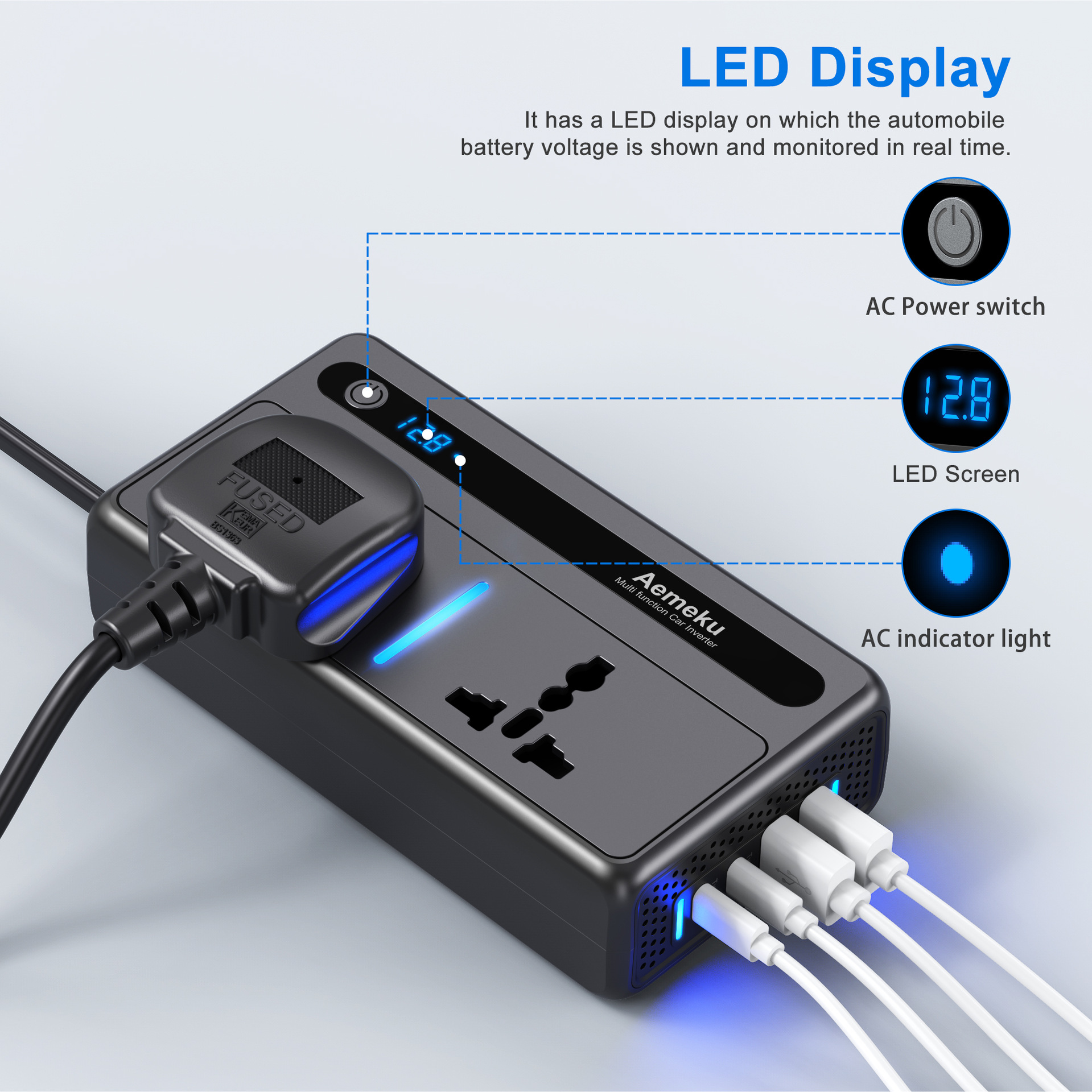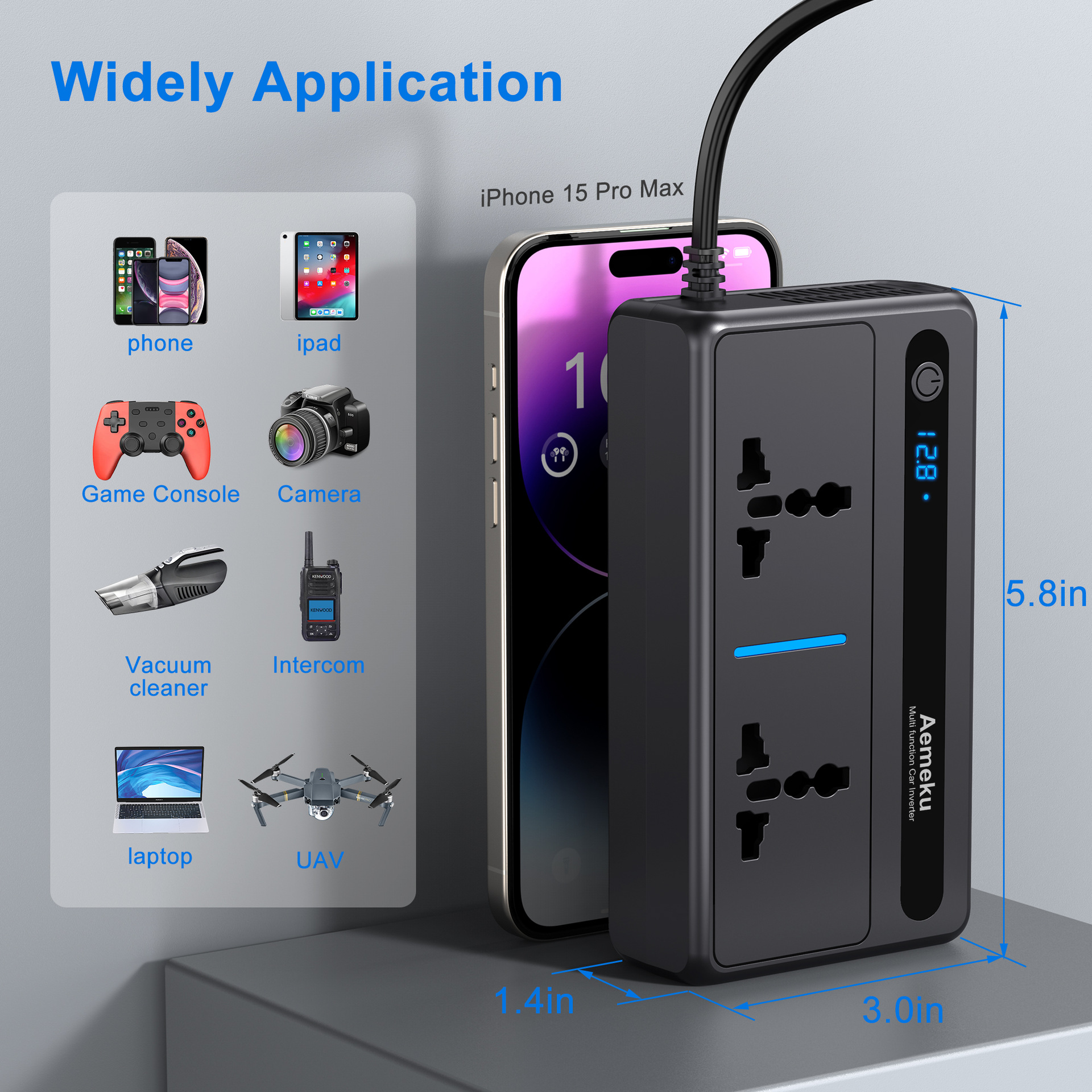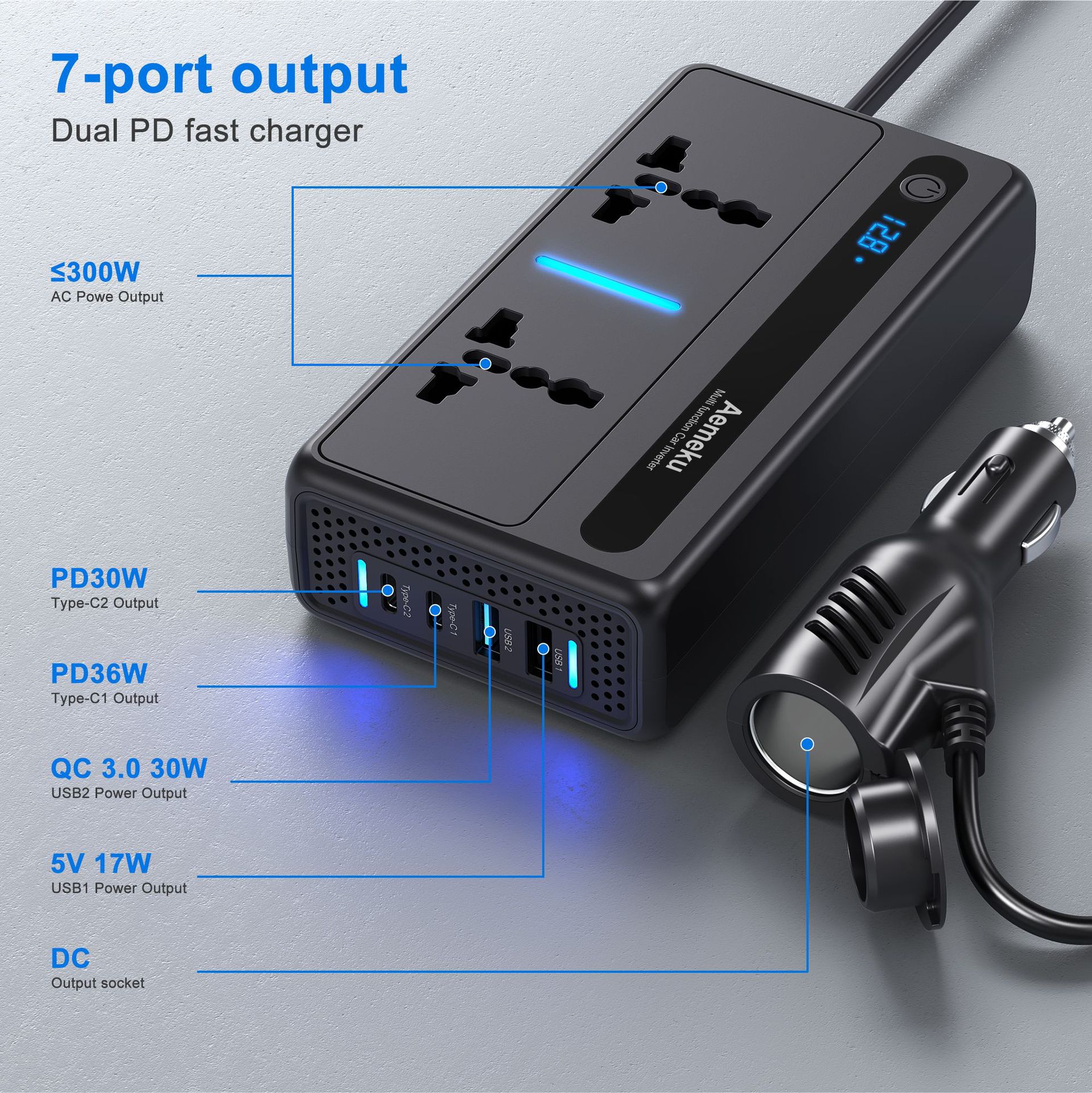 300W digital 12V24V turn 220V Aemeku car inverter PD fast charging station
