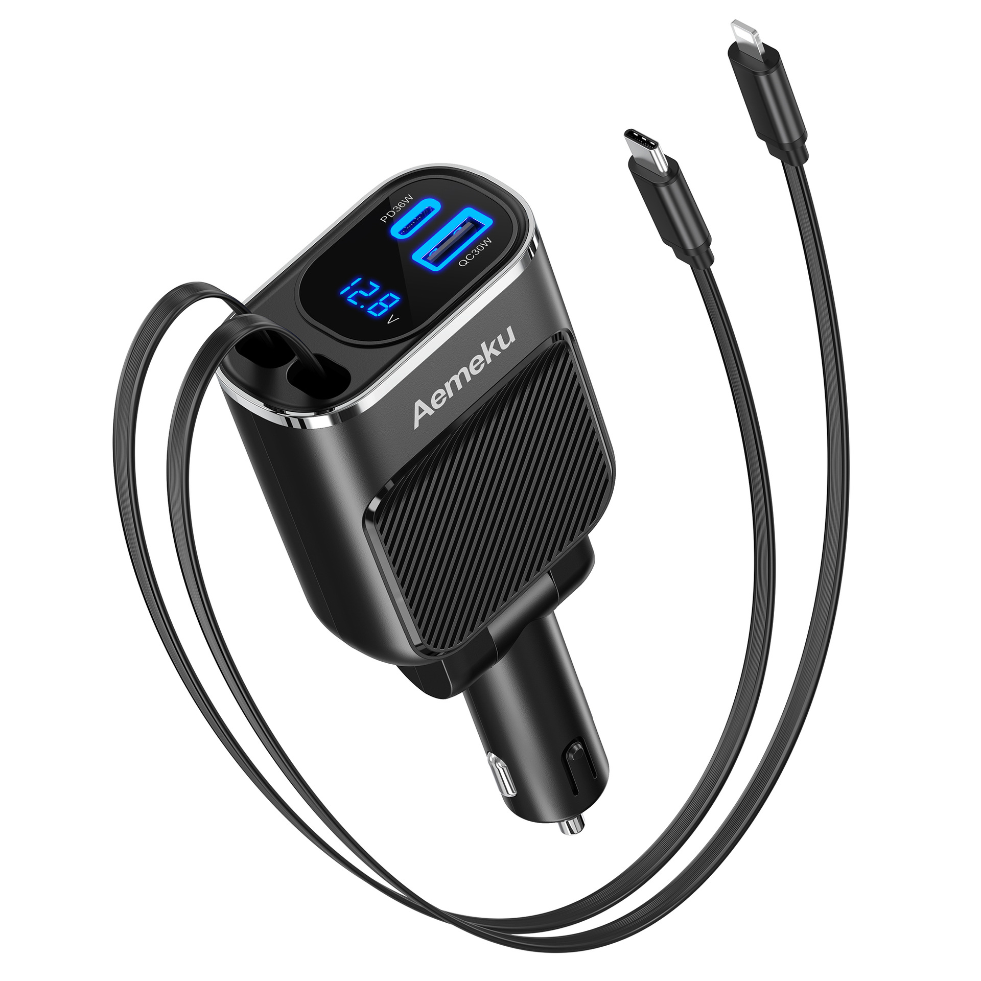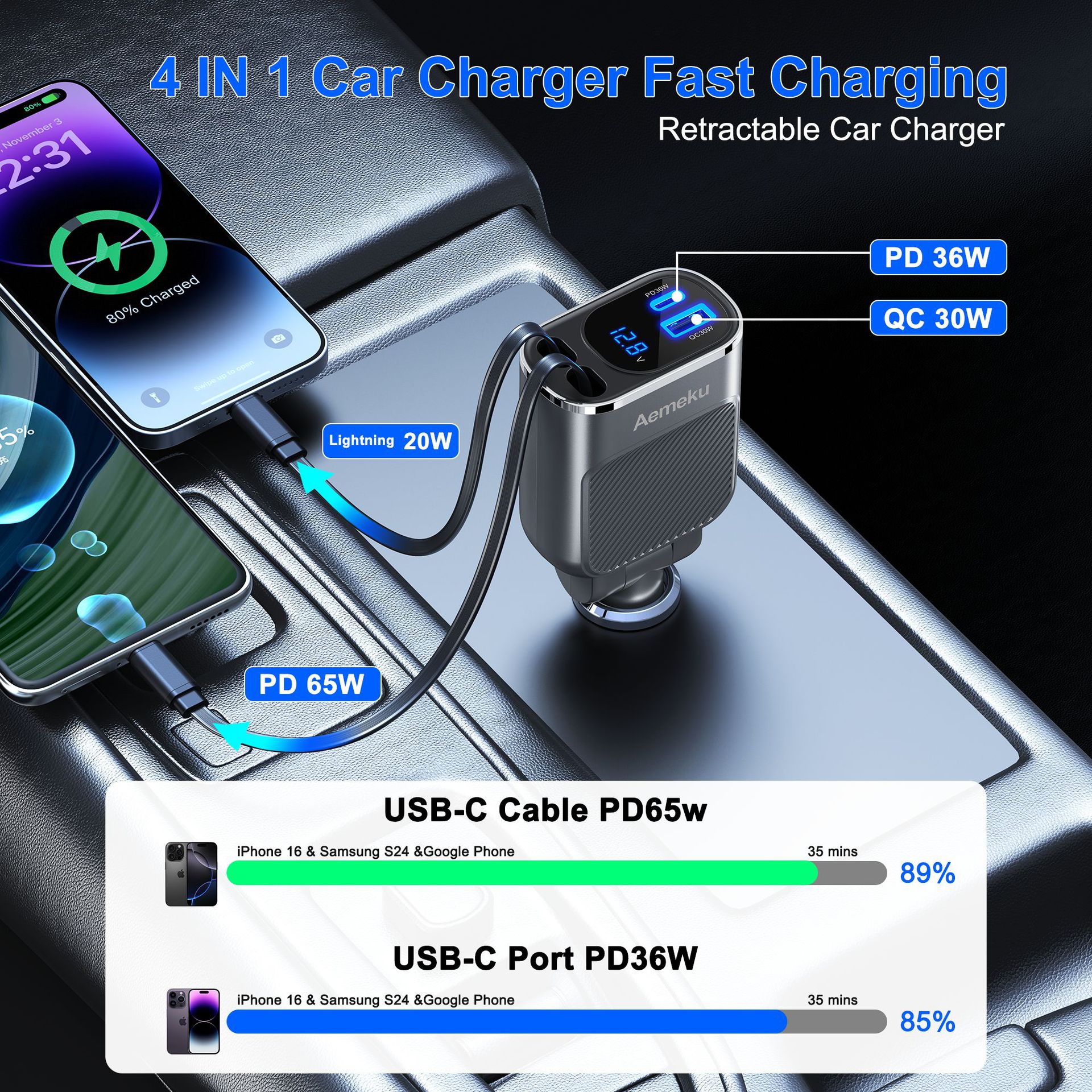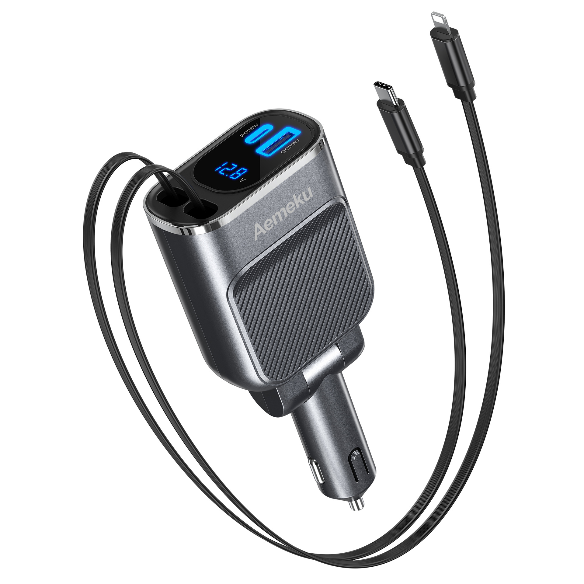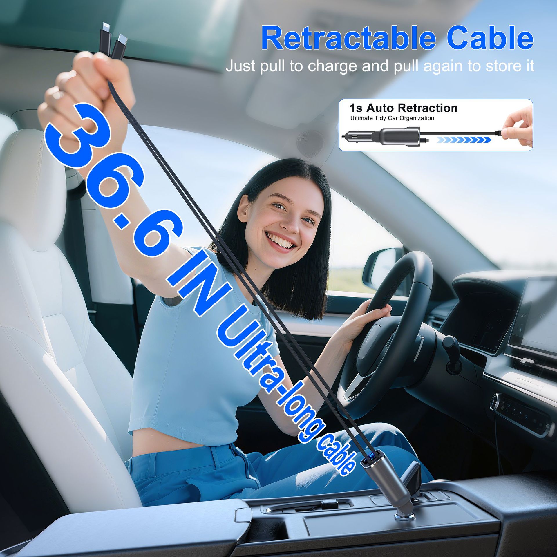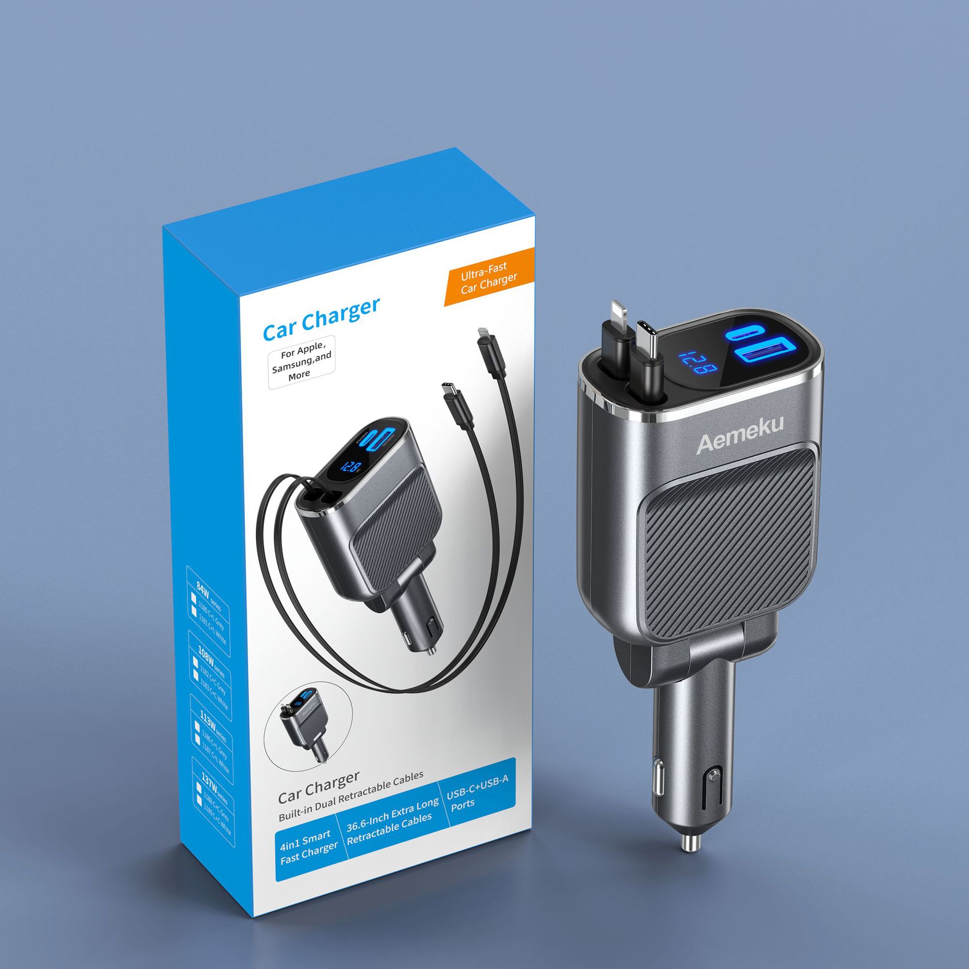 New 137W car charger with retractable cable, super fast charging, 4-in-1 multi-functional car charger with cable