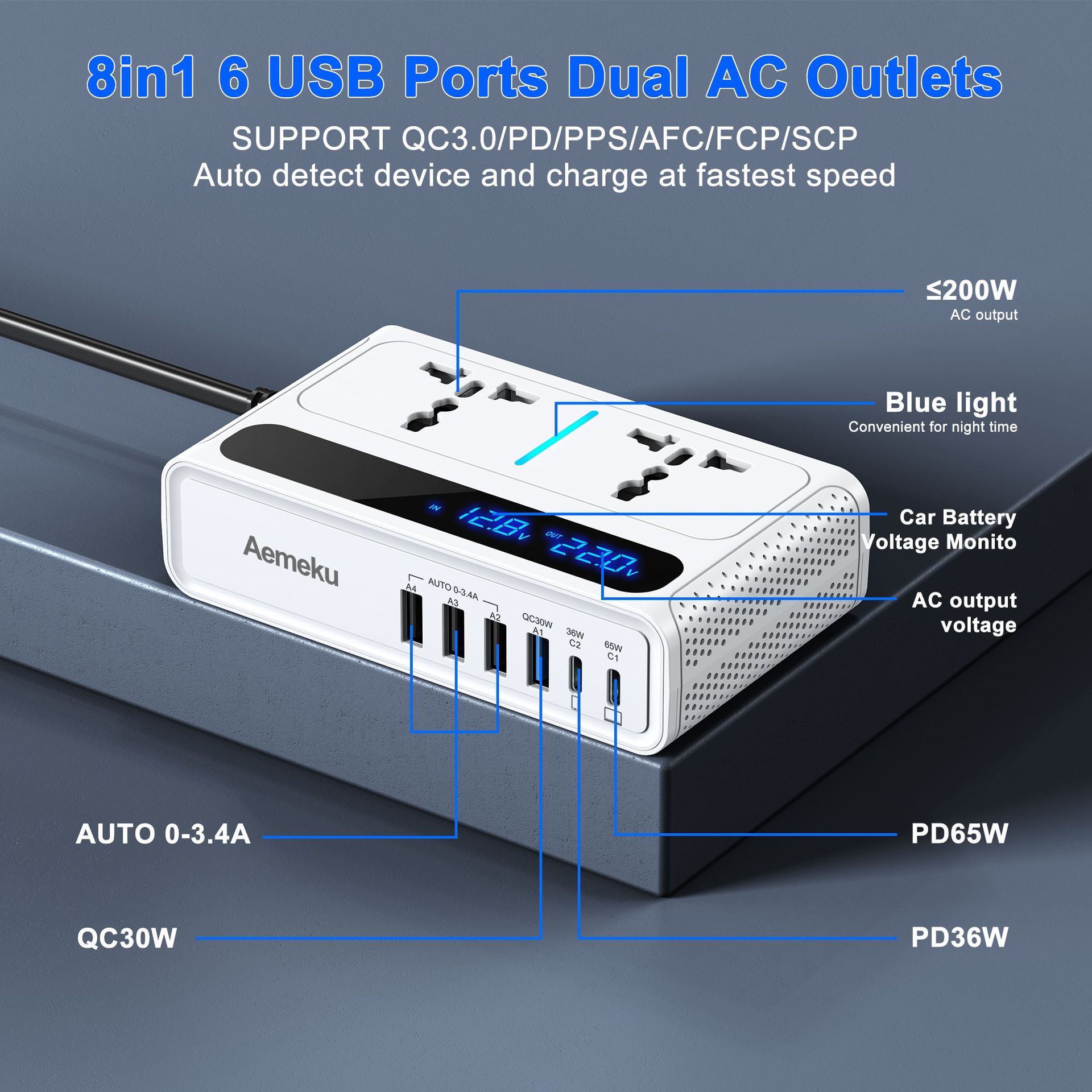New product 12V24V turn 110V or 220V 200W car inverter car charger PD65W