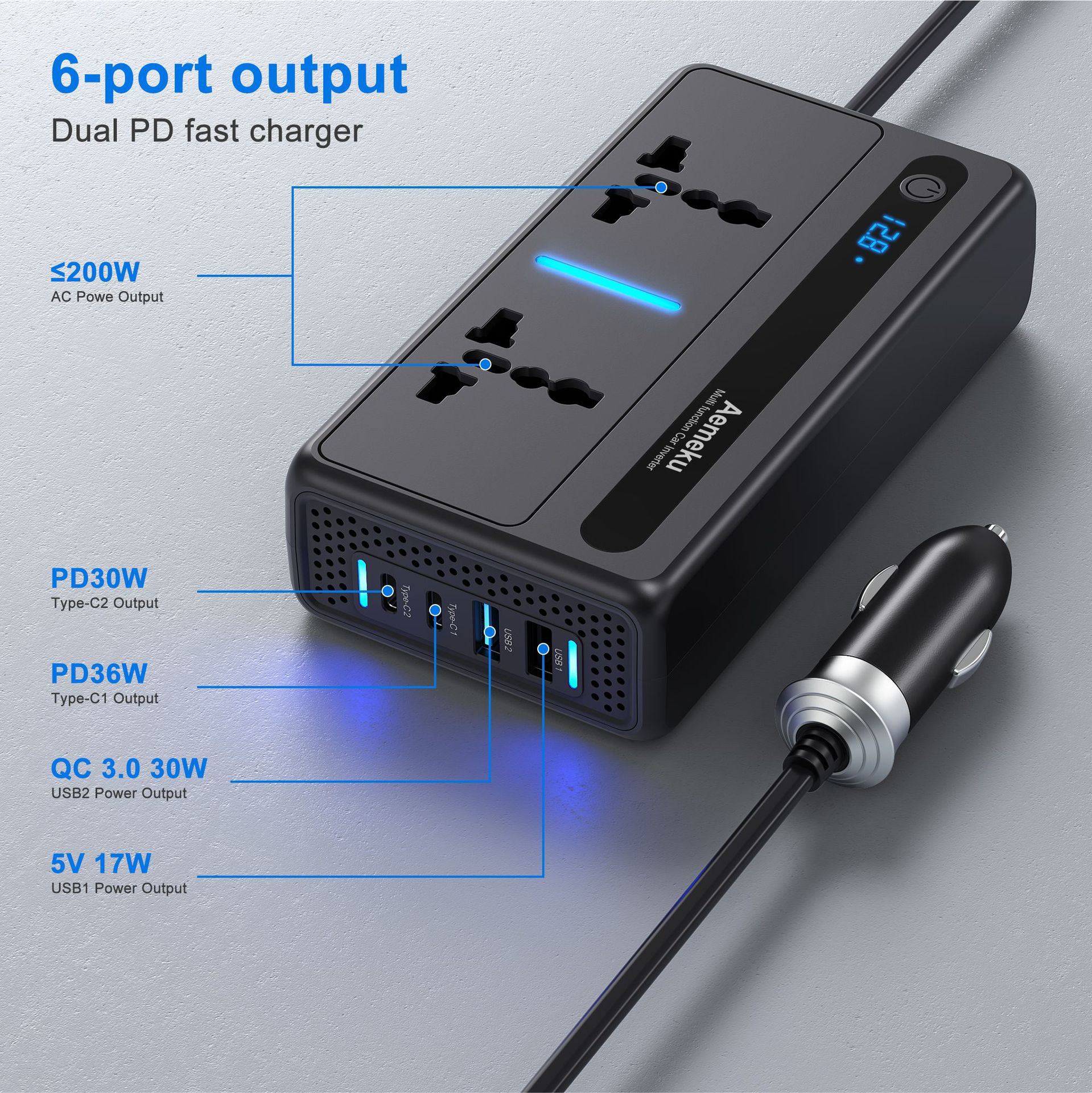 12V24V turn 220V Aemeku car inverter PD fast charging station