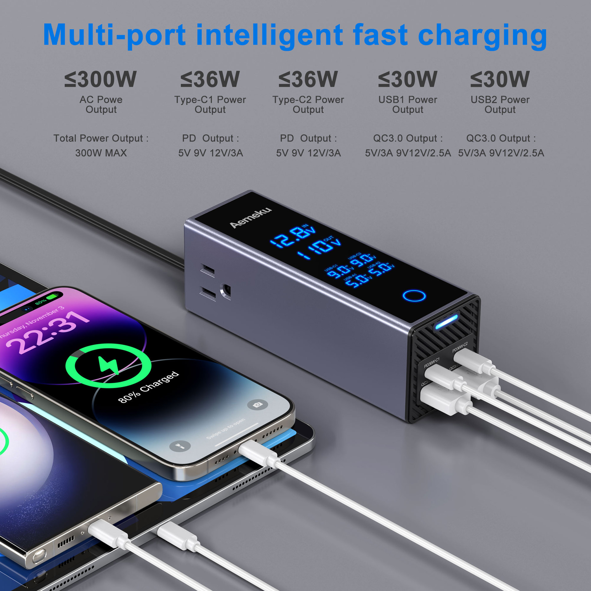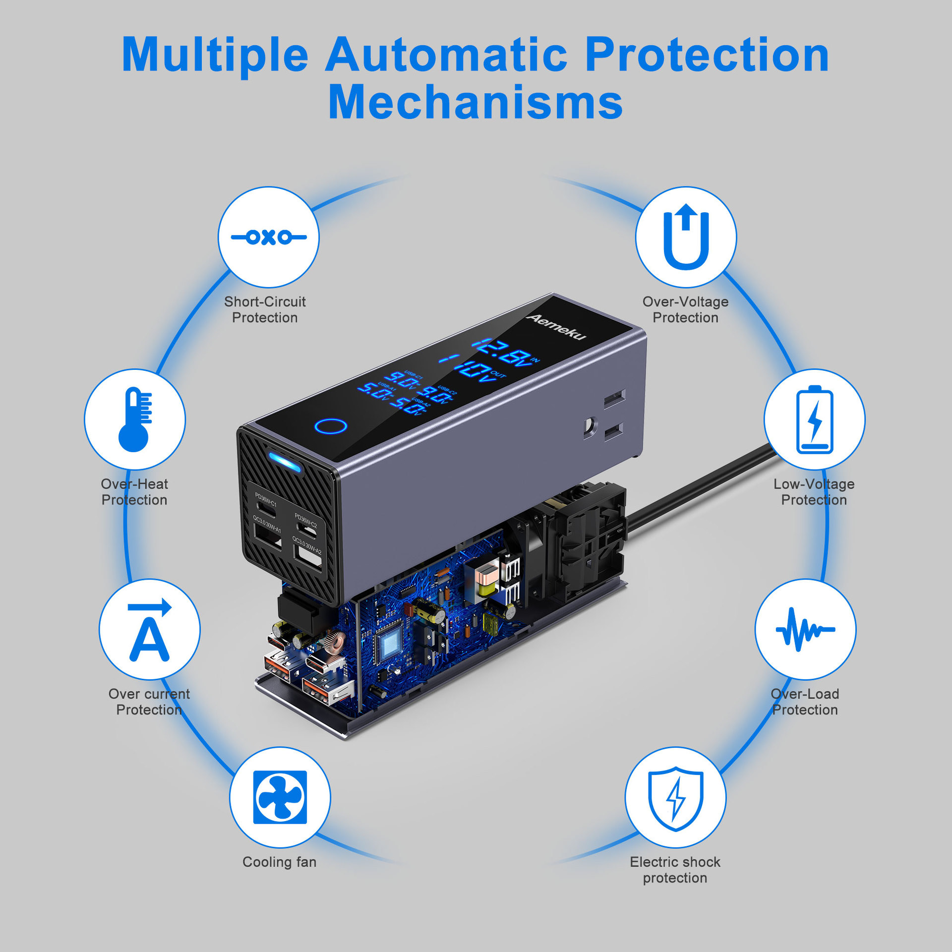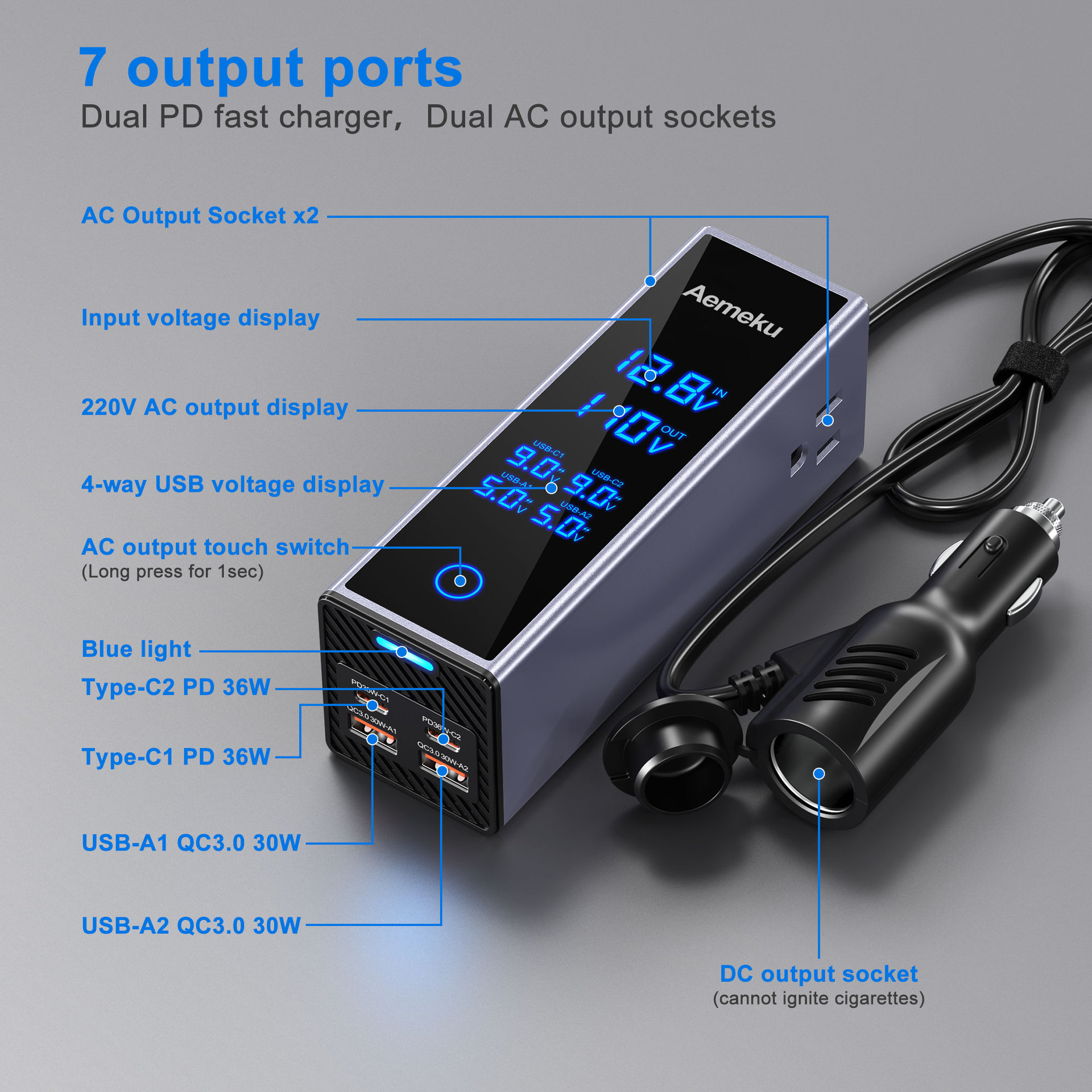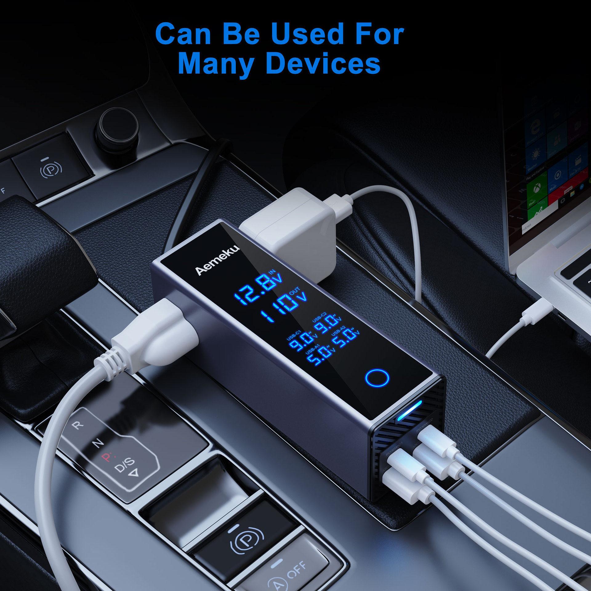 300W large screen multi-channel digital display 12V turn 110V American standard car inverter multifunctional