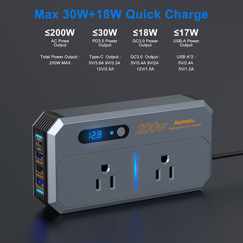 Aemeku Car-mounted inverter PD30W fast charging 12V turn 110V power converter for cars and trucks